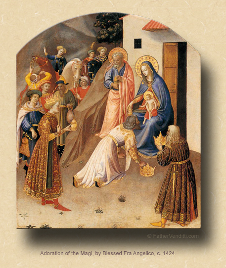 And from hearing today's Gospel lesson from Saint Matthew, you can tell that we are meant to commemorate today the visit of the Magi to the manger. The Magi are pagans—some translations call them “astrologers from the East”—who come to do homage to God become Man. They've come to know about the Incarnation of God into this world through their own mystical means, and their desire to worship God as an infant is a precursor of Christ's completion of salvation history: they are a prefiguring of the Gentiles who will be converted to the faith by Saint Paul, and announce from the very beginning of our Blessed Lord's life on earth that He has come to save all mankind. Both of the other lessons read on this day testify to this fact. Isaiah prophesies: “Lift up thy eyes and look about thee; who are these that come flocking to thee? Sons of thine, daughters of thine, come from far away…” (60: 4 Knox); and, the Blessed Apostle Paul, himself, tells us “that through the gospel preaching the Gentiles are to win the same inheritance, to be made part of the same body, to share the same divine promise, in Christ Jesus” (Eph. 3: 6 Knox).