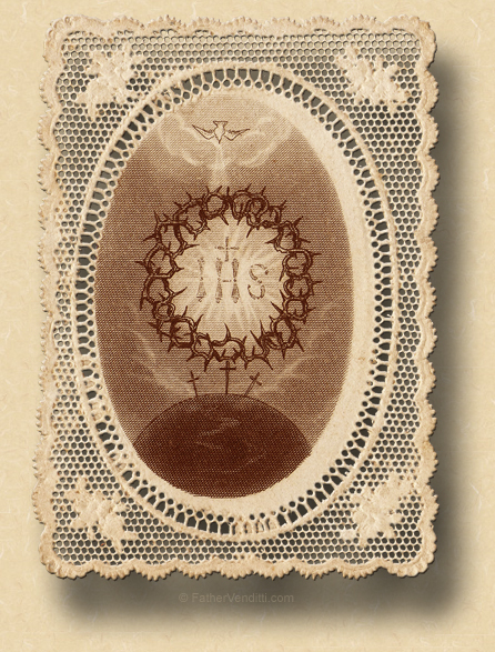 We are particularly blessed in a twofold way today, because today is also the Memorial of the Most Holy Name of Jesus, a devotion promoted by the Franciscan missionary, Saint Bernadine of Siena, in the fifteenth century, and which he popularized through the use of an ancient monogram from the third century, which appears to us to read “IHS”. You see it often on the covers of books and missals, and you often see it embroidered on liturgical vestments. Everyone recognizes it, but a lot of people don't know what it means; they either think it stands for something in Latin, or else they come up with their own bizarre theories. It's really very simple: it's the first three letters of the name “Jesus” in Greek, and was made popular by Saint Bernadine of Siena in honor of the Most Holy Name of Jesus.