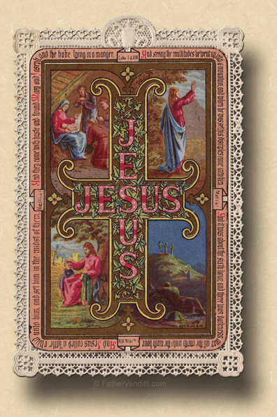 Several times each day we pray the Hail Mary. It's official title, as you know, is the Angelic Salutation, and it comes from chapter one of Luke's Gospel, in which the angel Gabriel salutes the Blessed Virgin with the words: “Hail, thou who art full of grace; the Lord is with thee; blessed art thou among women” (Luke 1: 28 Knox). When it started to become popular as a prayer in the eleventh century, the name of the Mother of God was inserted into it, and it started the take the form we know today: Ave Maria, gratia plena, Dominus tecum. Benedicta tu in mulieribus, et benedictus fructus ventris tui. "Hail Mary, full of grace, the Lord is with thee. Blessed art thou among women, and blessed is the fruit of thy womb." But it was Bernadine of Siena, as part of his preaching about the Most Holy Name, who first added the Holy Name of Jesus to the end of that sentence.
