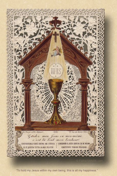 Getting back to the Magi and the Shepherds, two very different kinds of people, one group adoring our Lord on A&E followed by Masterpiece Mystery, the other on Spike TV followed by the Ultimate Fighter. But it doesn’t matter. Somehow they both were able to discern God in a child who looked like every other. And it is interesting to note that the Council of Trent expressly cites today’s Gospel lesson about the adoration of the Kings to teach us the cult which is due to Christ in the Blessed Sacrament. Jesus present in the tabernacle is the same Jesus the wise men found in Mary’s arms. Perhaps we should examine ourselves to see how we adore Him when he is exposed in the monstrance or hidden in the tabernacle, with what devotion we should kneel in the moments indicated in the Holy Mass, or every time we pass by where the Blessed Sacrament is reserved, and with what care and reverence we should approach Him when receiving Holy Communion.