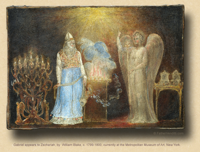 Luke begins his Gospel with the conception of the Forerunner, John the Baptist. The story of Zechariah learning of the impending pregnancy of his heretofore barren wife is one of those familiar pre-Christmas yarns that we think we all know: the arrival of the Baptist is announced to him by an angel and, because he expresses incredulity at the idea, he's punished with the loss of his voice; but, these are so much more than just straight-forward facts. There is a mystical component to Luke's Gospel that is overlooked, I think, by even the most erudite Scripture scholars, reflecting Luke's own background. We tend to look toward John's narrative as the mystical Gospel because it deals not such much with fact as with theology and spirituality, and it shines forth even in the most pedestrian of translations. But Luke's Gospel is so sublime in it's mystical elements, most of the people who have translated it probably didn't even understand themselves what they were reading. For sure, it's probably the most beautifully written piece of prose in the Bible, laid out in the most perfectly metered Greek ever put to paper, all of which is completely lost when translated.