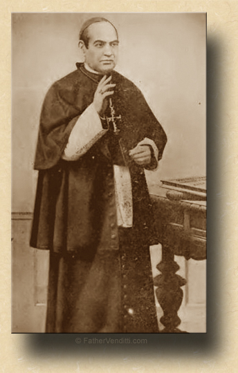 It was while there that he was appointed Archbishop of Santiago, Cuba (which was a colony of Spain at the time), but this is where the official biography of him suffers its own Nixonian missing eighteen minutes: it talks about the many wonderful spiritual books he wrote, his establishment of a couple of religious communities dedicated to spreading devotion to the Blessed Eucharist and the education of girls, and his efforts to educate and reform his clergy, but mentions nothing of the fact that his administration of the diocese was a complete and total disaster. He so mismanaged the financial affairs of the Archdiocese that, faced with a revolt of his clergy, the Holy See removed him from that post and arranged for him to become the personal confessor to the Queen of Spain, essentially putting him out to pasture with no pastoral responsibilities, where he could do no further damage to any diocese. It was while he was in Madrid in this nothing job that he became known for his holiness and his austerity of life. While there he also was responsible for spreading great devotion to the Blessed Sacrament and the Holy Rosary. As a bishop, he was entitled to attend the First Vatican Council, and vigorously defended the infallibility of the Pope; but, even these things didn't prevent him from making a mess of his seemingly harmless assignment as confessor to the Queen; having put his foot into his mouth one too many times, he got himself exiled from Spain, and died in France in disgrace in the year 1870. Pope Pius XI, who knew a saint when he saw one, beatified him, and he was canonized by Pius XII.