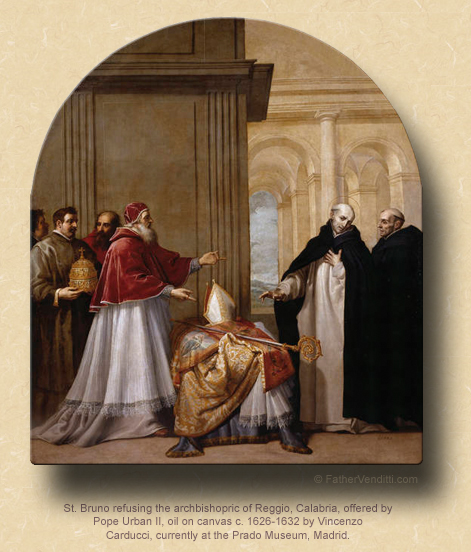So, who should pray to Saint Bruno? Anyone who wants to be united to our Lord, and that should be all of us. Anyone who wants to practice perfect charity, and that also should be all of us. But perhaps just as importantly, anyone who is struggling to be normal in a spiritual environment often beset by hysterical miracle-seekers and would-be visionaries; and, who among us isn't? So, let's pray to Saint Bruno, that we may find our joy not in the approval of others, but in the assurance that, if we follow the Gospel, even if the whole world gets angry and frustrated with us, it doesn't matter, because we have not been put in the world to please it, only to please its maker.