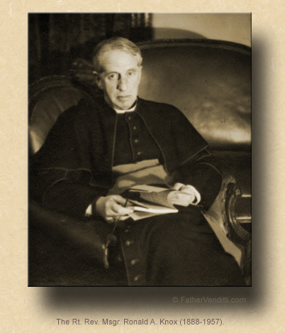 That’s today’s second lesson from Romans in Msgr. Knox’s translation. We began the season of Advent by quoting Father Knox, as I did the year before and the year before that, always with a promise to tell you something about him, but the promise always goes unfulfilled. So, since today’s Gospel lesson is a repeat from just a few days ago, and tomorrow is Christmas, I thought I would keep the promise.