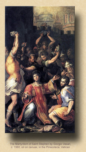 Not long after that hymn was composed, that erudite Father of the Western Church, Tertullian, would write, sanguis martyrum semen christianorum—“the blood of the martyrs is the seed of new Christians” (Apol., 50, 13: CCL 1, 171). Stephen's death marks the beginning of the wholesale persecution of the Church, but it also marks the beginning of the Church's phenomenal growth. The sight of so many men and women willingly—even joyfully—going to their deaths rather than deny the divinity of Christ would draw more converts into the Church than even the greatest sermons of the greatest saints. The best preaching is done by example; and, what better example could their be than death?