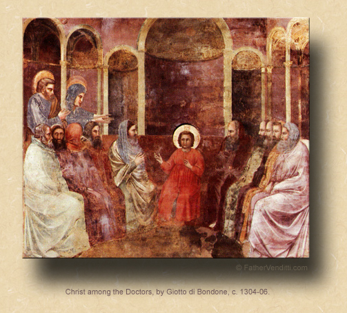 But we're not talking here about the biography of some ordinary person; we're talking about the life of our Lord, God and Savior, Jesus Christ, and we want to know everything. After all, everything our Blessed Lord says and does is a lesson for us, pointing for us the way to heaven; but, a significant chunk of our Lord's life has been denied to us; most of it, in fact. Our Lord begins His public ministry at the age of thirty, and goes to His cross at the age of thirty-three. Everything and anything that happened before then is missing … everything except one event, when our Lord was twelve years old, the only event that breaks the silence of the Gospels about the hidden years of Jesus (cf. Catechism of the Catholic Church, 534).