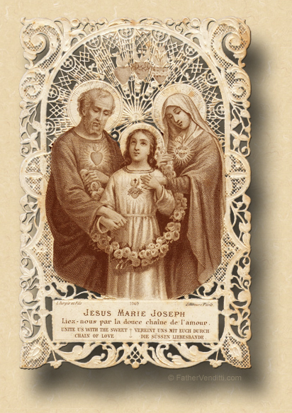 Pray to the Holy Family of Nazareth. Take courage from how normal a family they were. Take inspiration from how Holy they were. But pray to them. Make them the personal patrons of your own family. When your family is in turmoil, when everyone's fighting with each other and not speaking to each other and hurling verbal and emotional abuse on each other, as all families do at one time or another, pray to the Holy Family. Ask them for the grace to help make your home into the carpenter shop at Nazareth.