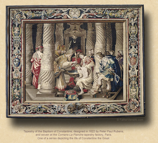 But when the Emperor Constantine had received health of body and soul by the Sacrament of Baptism, he promulgated a law to the whole world, allowing the Christians to build churches; and he encouraged them in this work by his own example as well as by this edict. Thus, in his Lateran palace he dedicated a Church to Our Savior; and founded the adjoining Baptistery in honor of St. John the Baptist, on the very spot where he himself had been baptized by St. Sylvester and cleansed from the leprosy of infidelity. The Pontiff consecrated it on the fifth of the Ides of November (November 9); and we celebrate the memory thereof on this same day, whereon for the first time a church was publicly dedicated in Rome, and there appeared before the eyes of the Roman people an image of Our Savior depicted on the wall.