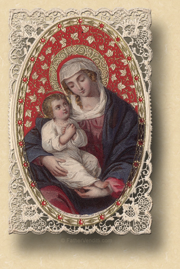 But these Gospel lessons haven't been put together by the Church over the centuries for the purpose of giving us cute themes for Holy Cards. These three brief verses about our Lord blessing children may seem odd in the sense that, in every other instance, when our Lord lays His hands on someone and blesses him or her, it's because that person is sick or crippled and our Lord is effecting a cure. There's nothing here to indicate that these children are suffering from any kind of malady, which may be the reason that our Lord's disciples try to shoo them away. But I tend to think that the Evangelist included these three verses here because of the Gospel lesson that immediately precedes them, which we heard yesterday, in which our Lord declares that marriage is forever: the first purpose of marriage is children; without them, the whole institution of marriage makes very little sense from the Christian perspective.