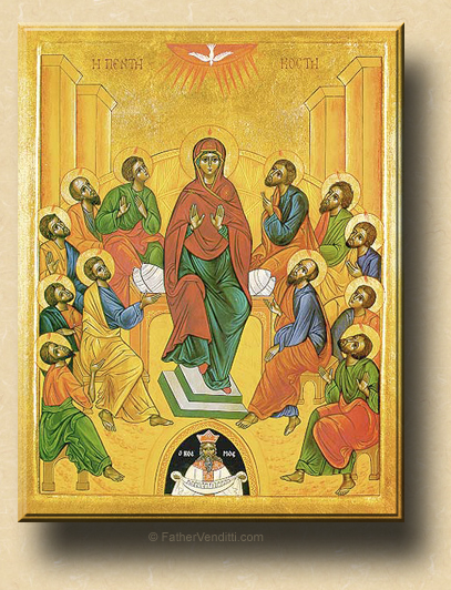 But the fact is that some people do fail to reach heaven, not because they don’t have what they need, but because they refuse to accept it. That’s why the resistance of some of the people in our Lord’s audience on the Feast of Pentecost is so disturbing. They had been told that they would be given the ability to save themselves, and were actively looking for a way not to believe it. Why? A glance at the icon for this feast tells us the reason.