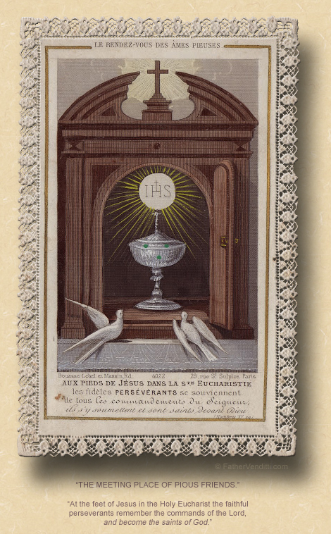 Every First Friday of the Month—which, as you know is dedicated to the Most Sacred Heart of Jesus—we always have a Eucharistic Holy Hour after the Noon Mass. When the time comes for Benediction, that ceremony, as you know, includes the recitation of the Divine Praises, which is a summary, in prayer, of some of the most important dogmas of the Catholic Faith; and, most people consult the missalette for the words to it. Unfortunately, the missalette that we have purchased here at the Shrine omits the prayer that, for centuries, concluded the Praises; but, I always insist on it being recited anyway, and I would like to recommend it to you today for inclusion in your own daily prayers: “May the heart of Jesus, in the Most Blessed Sacrament, be praised, adored, and loved with grateful affection, at every moment, in all the tabernacles of the world, even to the end of time. Amen.”