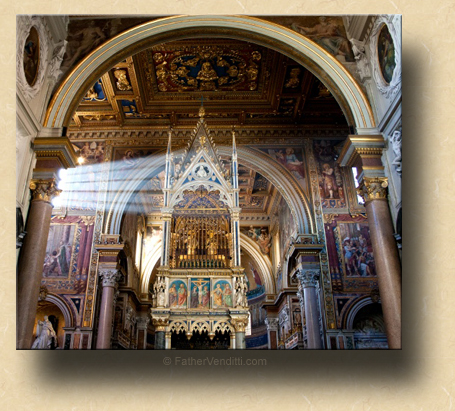 Peter and Paul are linked together in this feast because they are linked together in the foundation of the Catholic Church. Peter, the head of the Apostles and appointed by Christ to be his vicar on earth, founded the Church in Rome and died a martyr's death there. Paul, the Church's first and greatest missionary, also died a martyr in Rome. Years ago, when I made my first visit to the Eternal City of Rome back in the early 1980s, I was praying one day in the Basilica of St. John Lateran—the cathedral church of the Diocese of Rome—and I was approached by a young American tourist, a Protestant, who obviously thought I belonged there, and who began to ask me questions about the Basilica; so, I pointed out to him what I thought was the most significant point about the Basilica: that the baldacchino over the high altar is actually a reliquary which contains the heads of the Blessed Apostles Peter and Paul. A look of astonishment came over his face, and he said, “You mean our Peter and Paul?” By that he meant, “You mean the same Peter and Paul written about in my Protestant Bible?” I didn't volunteer any more information after that. Had I gone on to suggest that he walk over to St. Mary Major and pray before the manger in which the Child Jesus was lain in Bethlehem, he would have had a stoke.