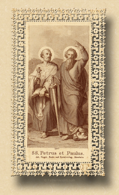 The Introit for today's Mass on the Solemnity of the Apostles Peter and Paul: Isti sunt qui, vivéntes in carne, plantavérunt Ecclésiam sánguine suo: cálicem Dómini bibérunt, et amíci Dei facti sunt—“These are the ones who, living in the flesh, planted the Church with their blood; they drank the chalice of the Lord, and became the friends of God.” Let us, on this most holy feast, ask for their prayers for ourselves, and for the Church that our Lord and God Jesus Christ personally established upon this earth.