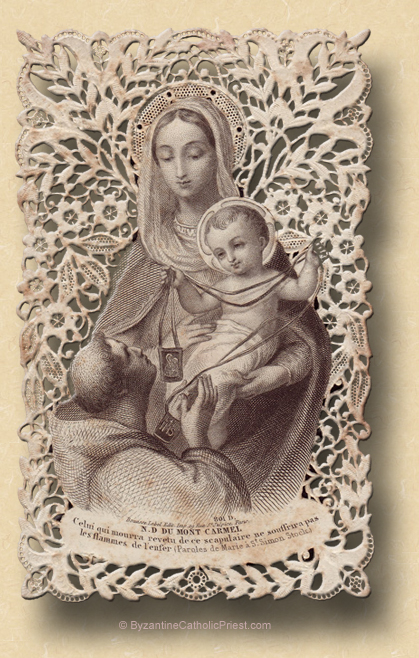 9:23 AM 7/16/2014 — You may have noticed that, even on the memorials of saints, I typically stick to the readings of the day. I do that for a couple of reasons: first, if one takes the optional readings for the various memorials that occur throughout the year, one would find many of the same readings repeating themselves over and over again; but, also because the Church has provided a spiritual program contained in the succession of the readings for what are traditionally called the ferias or ferial days. But today is different; for, even though the memorial of Our Lady of Mt. Carmel is an optional one, and probably won't be celebrated in most parishes throughout the Church—or, if it is, it will certainly be done with the ferial readings—we who have dedicated ourselves to living and spreading the message of Our Lady of Fatima have a special relationship to this feast, and for the particular devotion that springs forth from it: the Brown Scapular. I'm not going to repeat what Our Lady said about the Brown Scapular at Fatima, but I would like to point out a few things about it's own history.