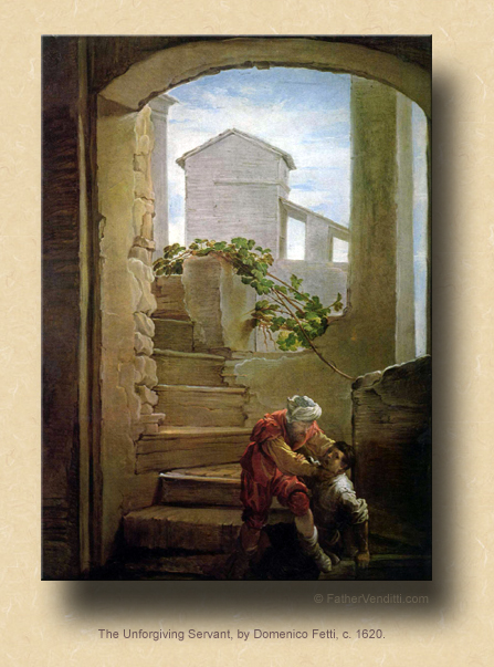 A few of you may remember me mentioning before that I use to listen sometimes to Dr. Laura on the radio. She’s was one of these talk show hosts who pretended to be some sort of therapist even though she’s not; she may still be on the air somewhere, I don’t know. She's was raised a Catholic, but converted to the Jewish faith when she got married. And her notion of forgiveness is a very classical Jewish notion. So, women would call her up, for example, and tell her that their husbands have been unfaithful or they caught them looking at dirty pictures on the Internet or something, or how some relative or other did something to hurt them, and they’ll ask if they should forgive. And invariably she would respond by saying that forgiveness requires some kind of recompense: that you can’t forgive someone until they’ve made amends. It’s the classical Jewish point of view: an eye for an eye; forgiveness requires reciprocity. But the parable told by our Lord says something quite different, and I can only imagine how it must have shocked his Jewish audience, because the employer in the story initially takes a classical Jewish point of view: he wants to sell the servant and his family into slavery until his debt is paid off, and only after it’s paid off will he release him. According to the laws set down in the book of Leviticus in the Old Testament, this is what he is supposed to do. But the employer doesn’t stick to it. He feels sorry for his servant and, because the servant pleads with him for the sake of his family, he lets him off the hook completely, so much so that now he doesn’t have to pay the money back at all.