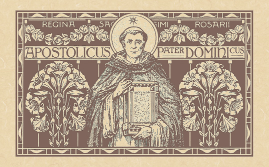 * Born in Calaruega, Spain, Dominic (1170-1221) is remembered for combating the Albigensian heresy, his learning, and his love of poverty. He founded the second of the "mendicant" or "begging" orders of the Catholic Church after the Franciscans, the Order of Preachers, known as the "Dominicans" or "Black Friars" because of the color of the choir mantel worn over their familiar white habit. He is often credited in popular devotion for having a role to play in the development of the most holy Rosary, though this is not supported by any actual historical evidence.
