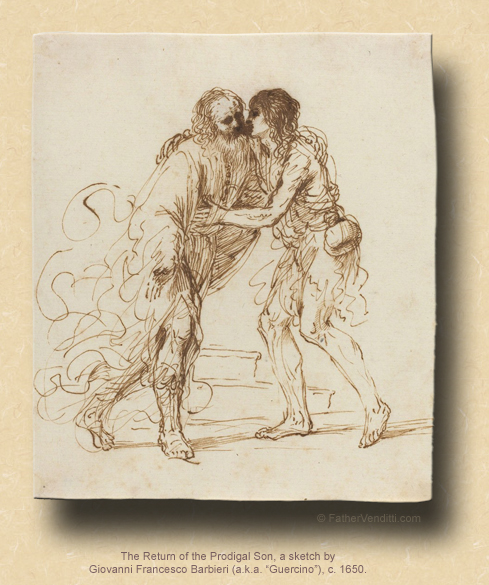 We, of course, don't fault the father for his forgiveness because we know he represents God, and we like the idea of God always willing to forgive us no matter how wretched we've behaved; but, his manner of forgiveness is not typical, and highlights the fact that we often don't look at what he does in this parable closely enough, because the way the father chooses to forgive his younger son is actually very foreign to us. He doesn't scold him, nor does he offer his forgiveness conditionally, demanding an apology the way we usually do. We make ourselves feel better, pretending to be magnanimous by saying, “I forgive you,” but we always make sure to collect our pound of flesh in the process. Our forgiveness is really nothing more than a kind of emotional blackmail: “I forgive you, so long as you continue to feel guilty about it.” And you have to admit that, nine times out of ten, that's how we “forgive” anyone whom we feel has done us wrong. But the father in the parable doesn't do any of that; instead, he interrupts his son's apology and throws a party, pretending that the offense never took place, which only highlights the difference between the kind of forgiveness we so often offer to each other and the nature of God's forgiveness to us when we've sinned.