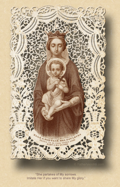 As you can see, the Seven Dolors bear close resemblance to the fourteen Stations the Cross; a few of them are the same.  And it is not a coincidence that this observance follows directly after the Feast of the Exaltation of the Holy Cross; for, how can we contemplate the scene of the Crucifixion of our Blessed Lord without being conscious of our Mother and His as she weeps at the foot of the Holy Cross, and see our Blessed Mother as the chief example of how to process the Passion of our Lord in our prayers: with love, with resignation and with complete abandonment to the Divine Will?  We can only do so with the hope—as we will pray in today's Post-Communion Prayer—“that, honoring how the Blessed Virgin Mary suffered with Her Son, we may contemplate, in the sufferings of Christ, what is lacking in ourselves.”‡‡