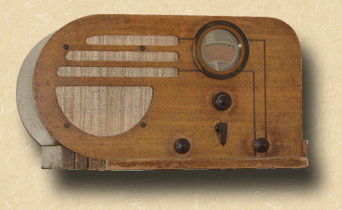 Left: this 1928 Model 511 "Brown" is shown with a standard Model 211 Speaker on top. The speaker did not have to be placed on top, though most owners did; which begs the question why they didn't simply design a single unit. The reason may be that the already antiquated and fragile high-impedance speaker didn't last nearly as long as the radio. The "Brown" was the simplest model in this series; other models, though identical in shape and on the inside, had elaborately decorated exterior cabinets.